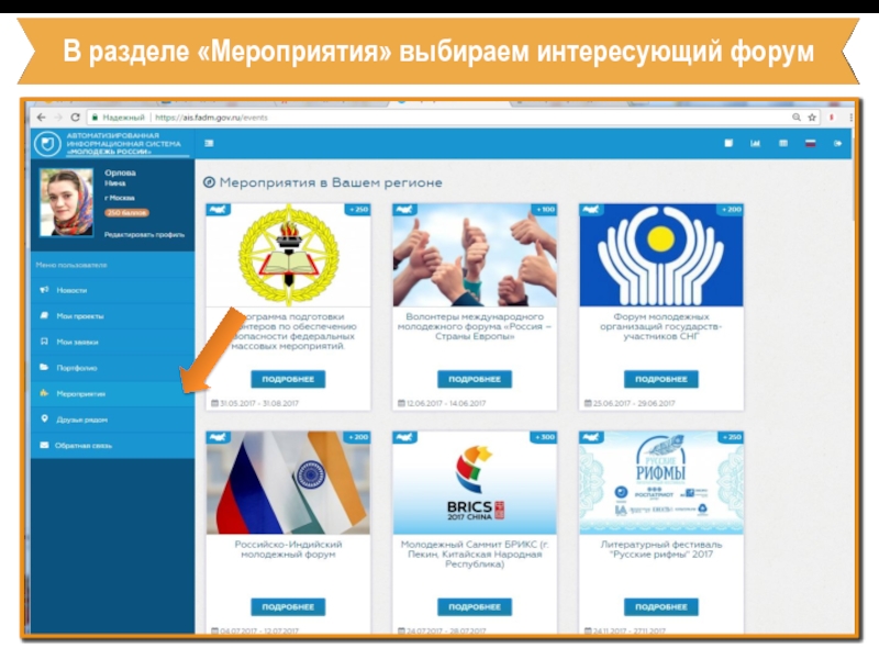 РАЗДЕЛ «МОИ ПРОЕКТЫ» в АИС «Молодежь России»