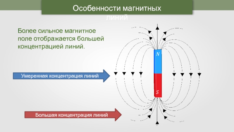 Вне магнита магнитные линии выходят из северного полюса магнита и входят в южный, замыкаясь внутри магнита.