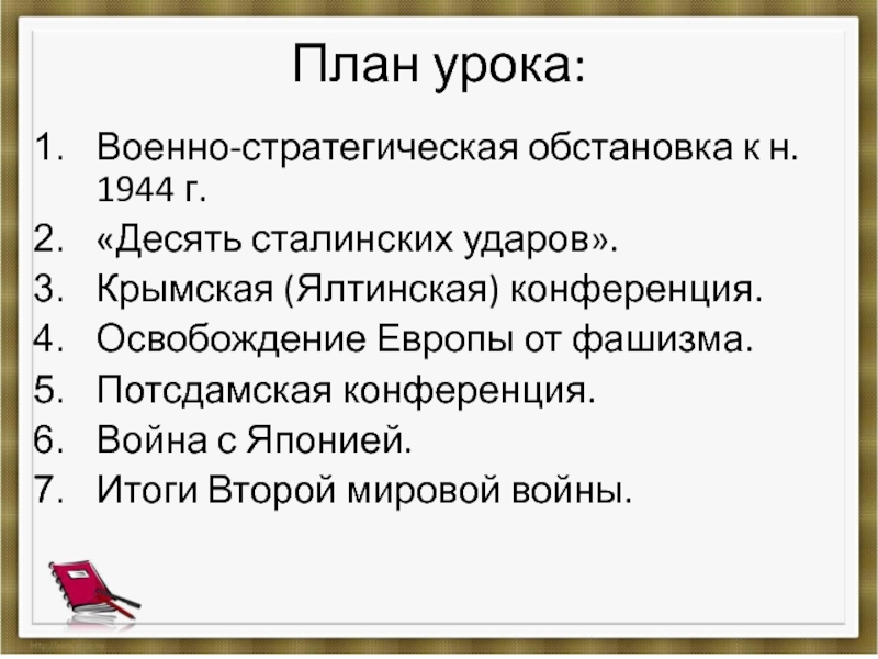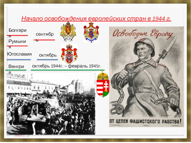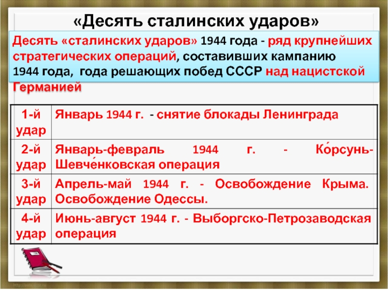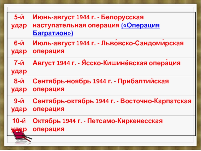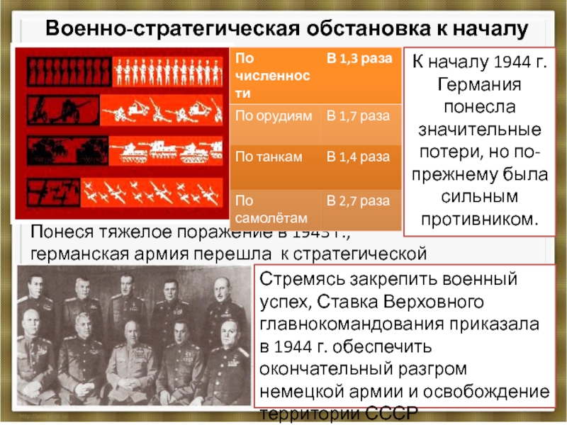 Стремясь закрепить военный успех, Ставка Верховного главнокомандования приказала в 1944 г. обеспечить окончательный разгром немецкой армии и освобождение территории СССР