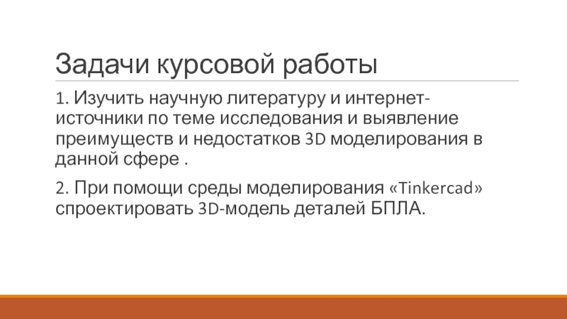 Задачи курсовой работы1. Изучить научную литературу и интернет-источники по теме исследования и выявление преимуществ и недостатков 3D