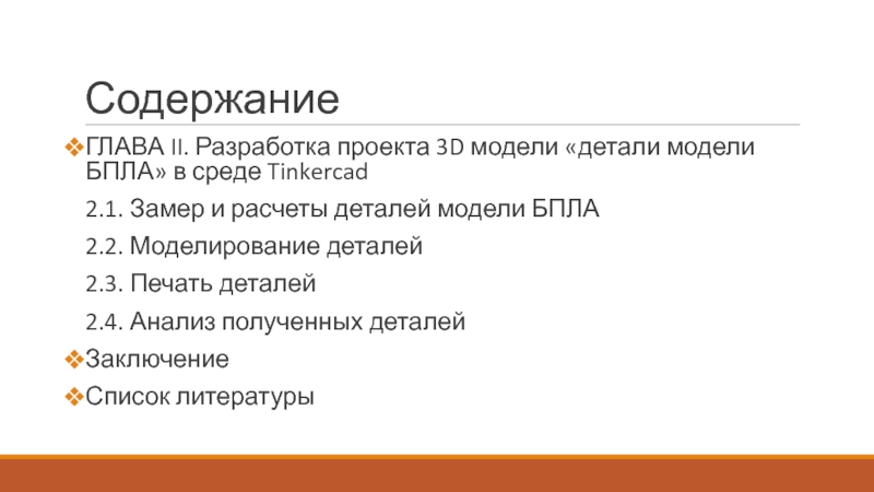 СодержаниеГЛАВА II. Разработка проекта 3D модели «детали модели БПЛА» в среде Tinkercad2.1. Замер и расчеты деталей модели
