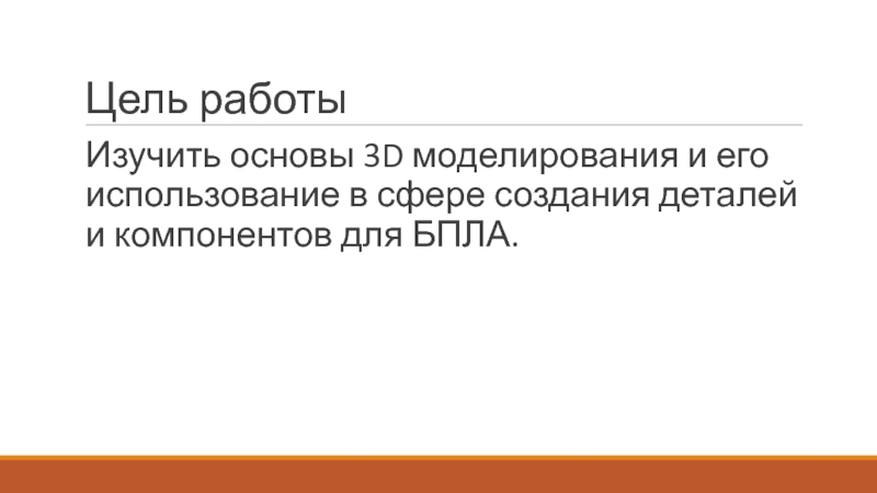 Цель работыИзучить основы 3D моделирования и его использование в сфере создания деталей и компонентов для БПЛА.