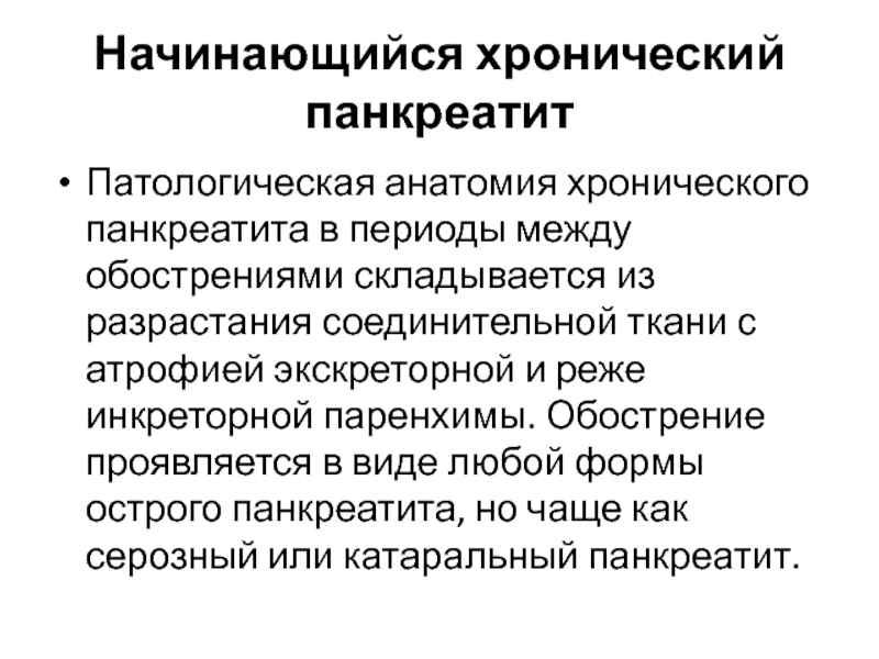 реже инкреторной паренхимы. Обострение проявляется в виде любой формы острого панкреатита, но чаще как серозный или катаральный панкреатит.