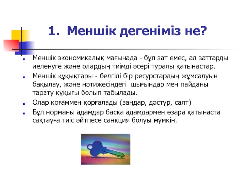 Слайд 2 Меншік дегеніміз не?
