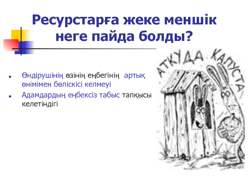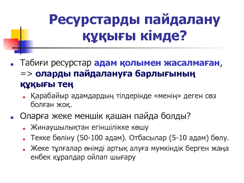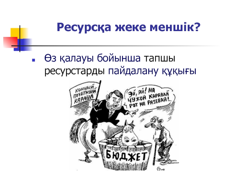 Слайд 9Ресурсқа жеке меншік?