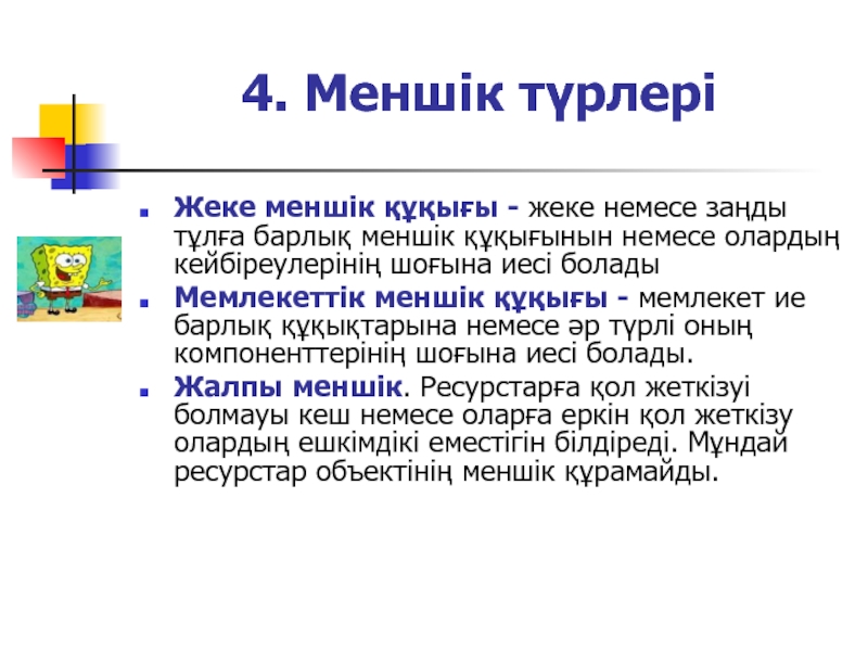 Слайд 4Меншік құқықтар