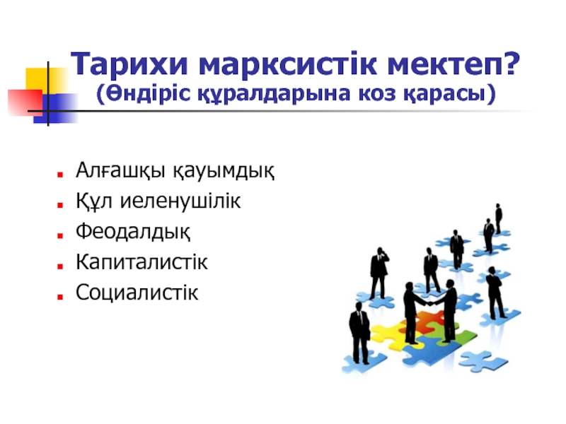 Слайд 22Тарихи марксистік мектеп? (Өндіріс құралдарына коз қарасы)