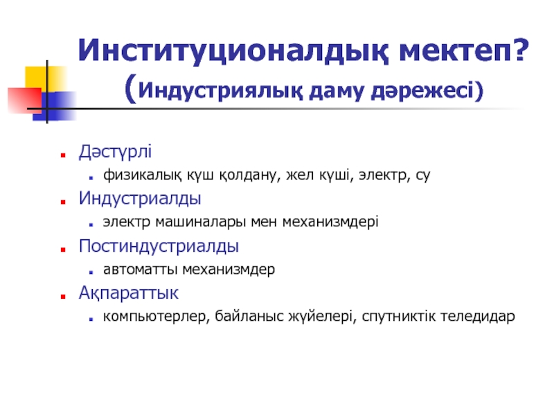 Слайд 23Институционалдық мектеп? (Индустриялық даму дәрежесі)