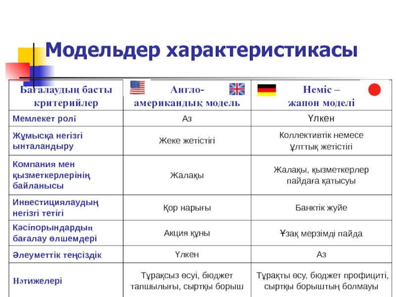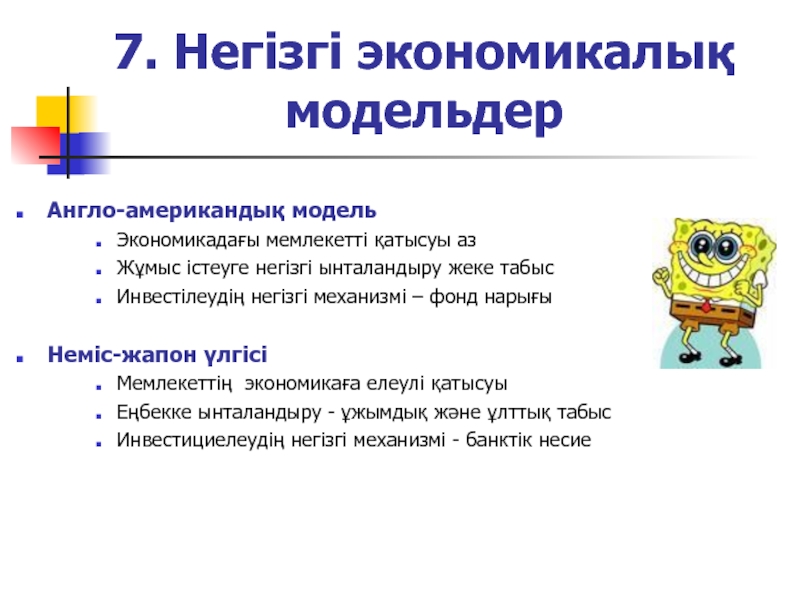 Слайд 277. Негізгі экономикалық модельдер