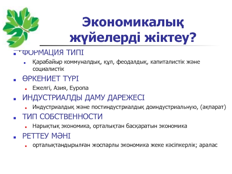 Слайд 186. Экономикалық жүйелердің типтері