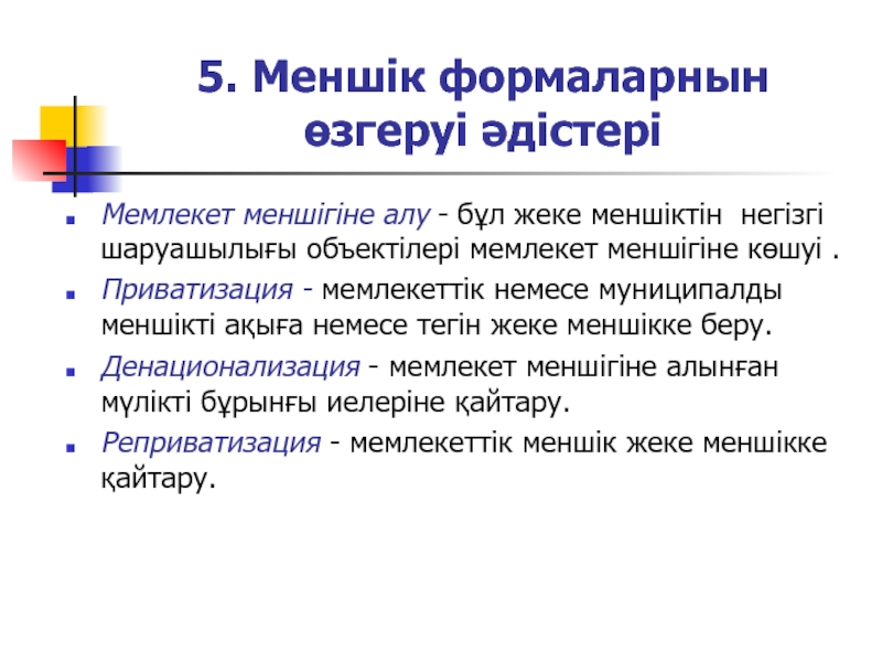 Слайд 5Меншiк құқықтарының ерекшеліктері?