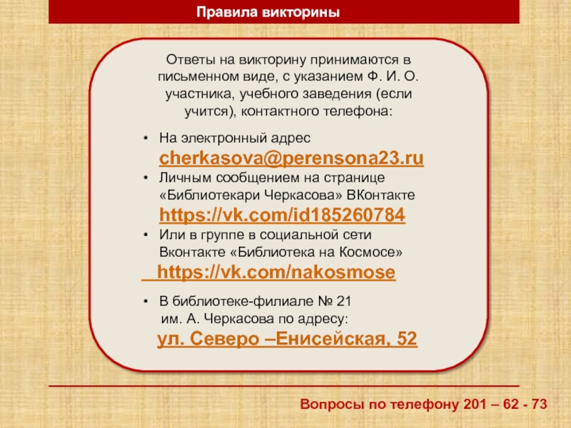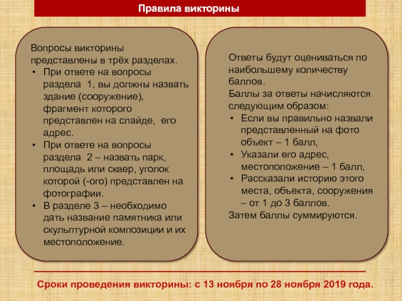 Сроки проведения викторины: с 13 ноября по 28 ноября 2019 года.