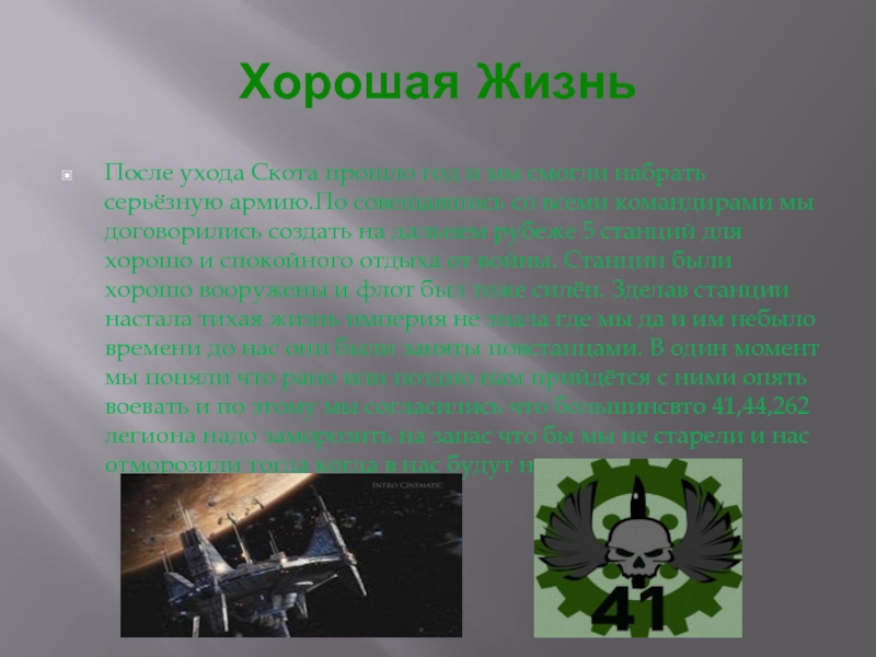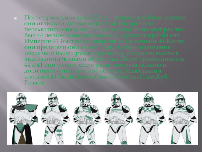 Слайд 15После присоединения 262 к 41 легиону всё было хорошо они
