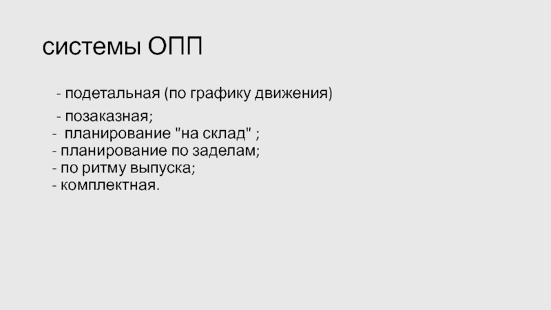 системы ОПП   - подетальная (по графику движения)  - позаказная; - планирование