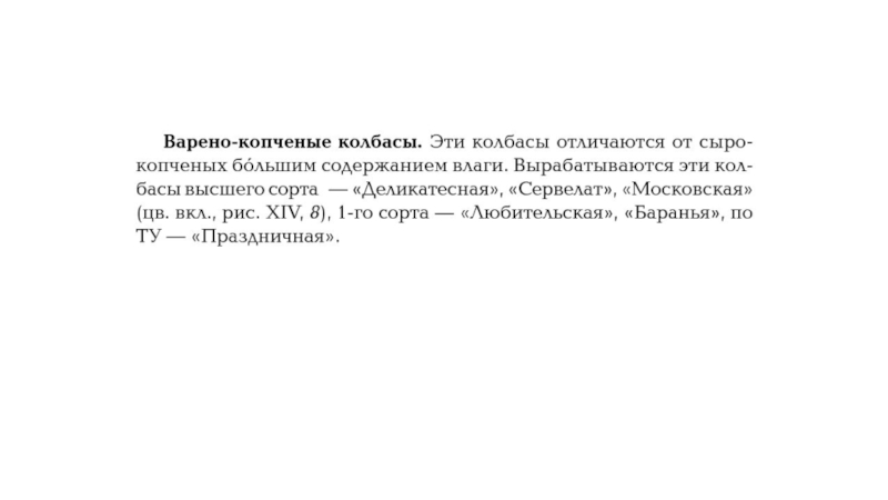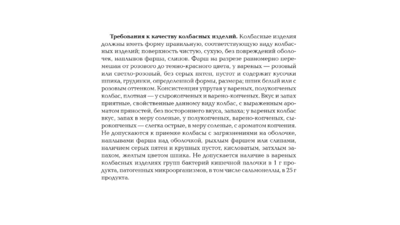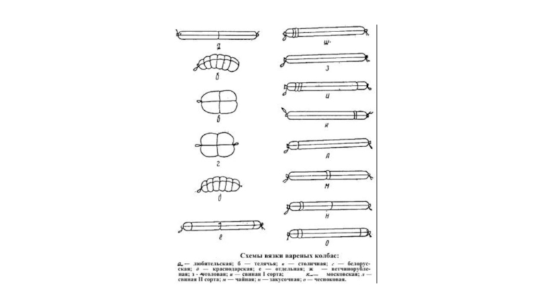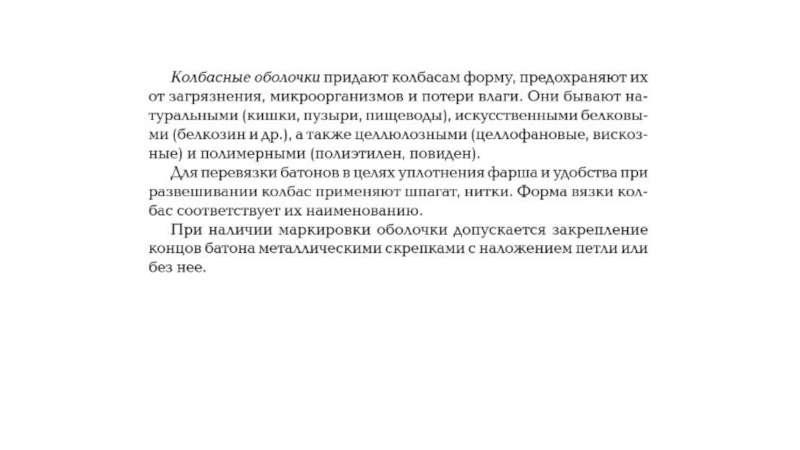 оболочки, небрежную вязку, небольшие видимые пустоты под оболочкой (1–2 см), небольшие слипы – бледноокрашенные части батонов в виде продольных полос; небольшую морщинистость оболочки; для копченых и полукопченых колбас – неравномерную или недостаточную прокопченность батонов.