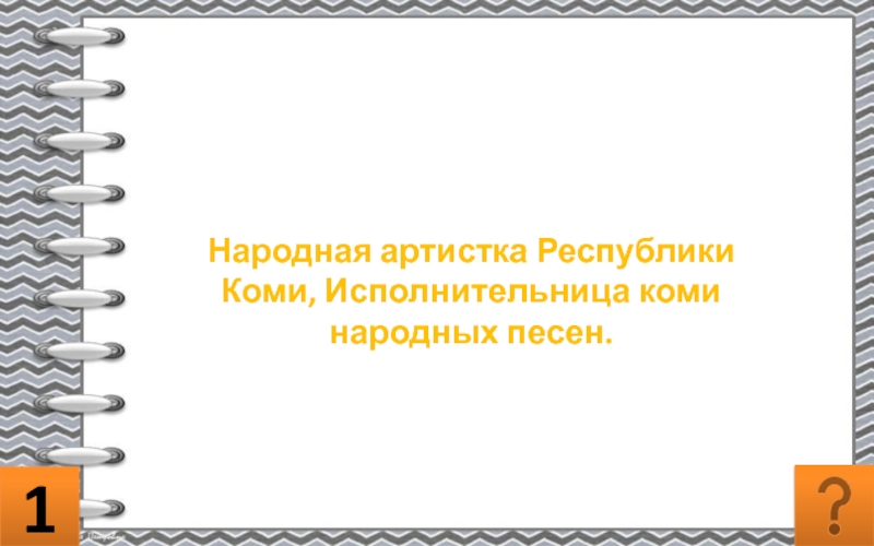 1Народная артистка Республики Коми, Исполнительница коми народных песен.