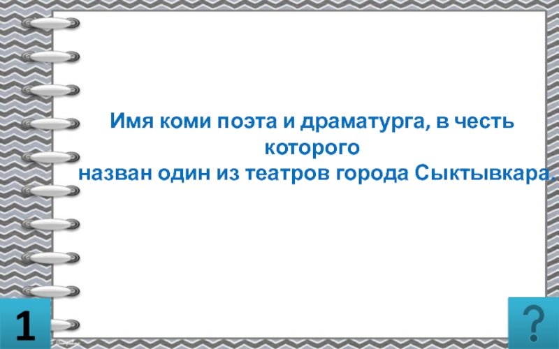 1Имя коми поэта и драматурга, в честь которого назван один из театров города Сыктывкара.