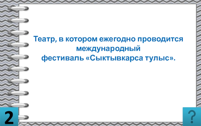 2Театр, в котором ежегодно проводится международныйфестиваль «Сыктывкарса тулыс».