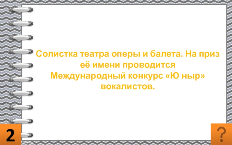 2Солистка театра оперы и балета. На приз её имени проводится Международный конкурс «Ю ныр» вокалистов.