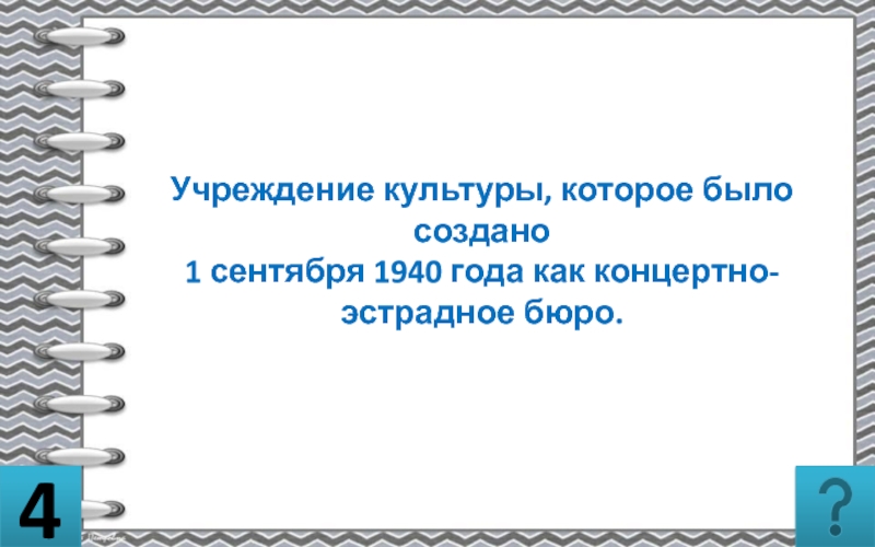 4Учреждение культуры, которое было создано 1 сентября 1940 года как концертно-эстрадное бюро.