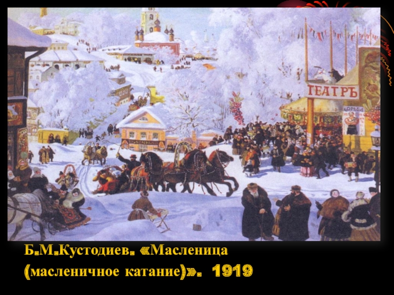 Б.М.Кустодиев. «Масленица (масленичное катание)». 1919