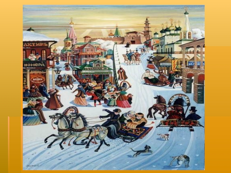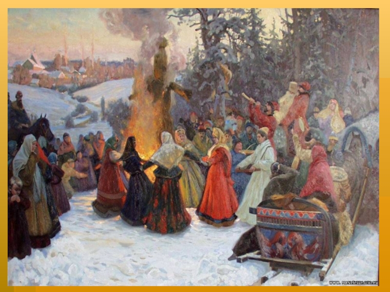 Конец зимы. Дни становятся длинными и светлыми. В это время на Руси устраивались народные гулянья. Назывался этот