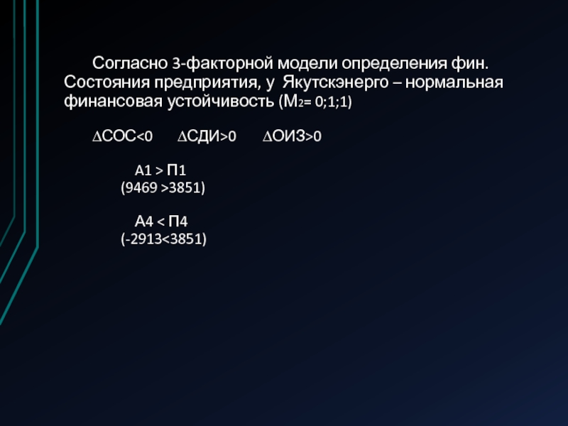 Слайд 25 Согласно 3-факторной модели определения фин. Состояния предприятия, у Якутскэнерго –