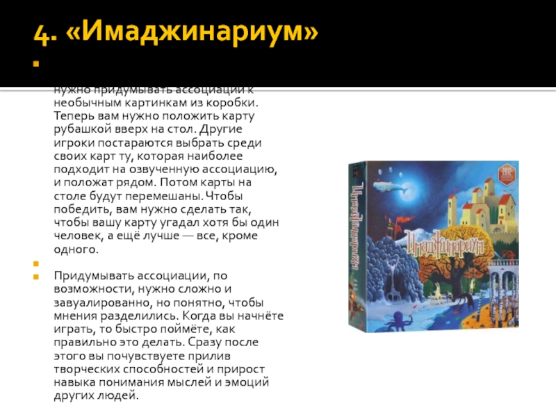 в которой нужно придумывать ассоциации к необычным картинкам из коробки.