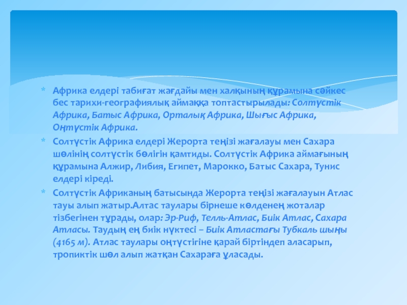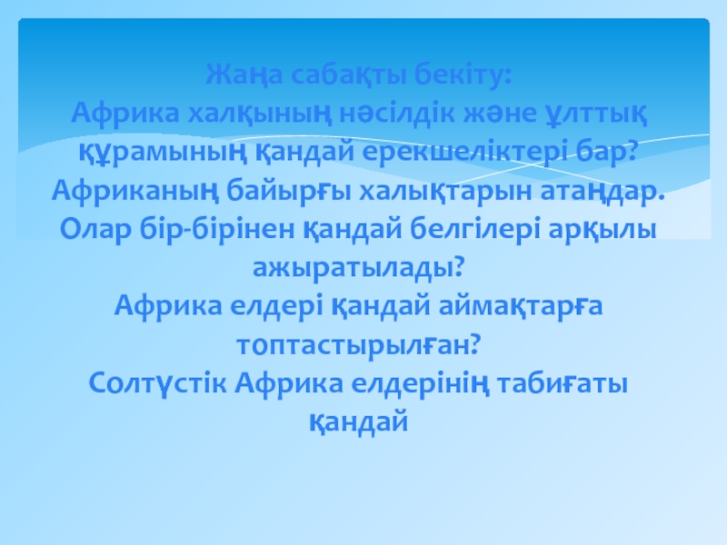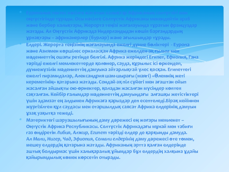 және ұлттық құрамы өте күрделі. Африкада Жер шарындағы негізгі үш
