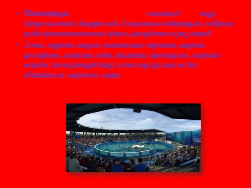 Слайд 10Океанариум (Miami Seaquarium) – основан в 1960 году. Среди камней и водорослей,