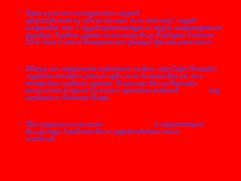 Слайд 15Один из самых посещаемых музеев Майами. Вилла Вискайя представляет из