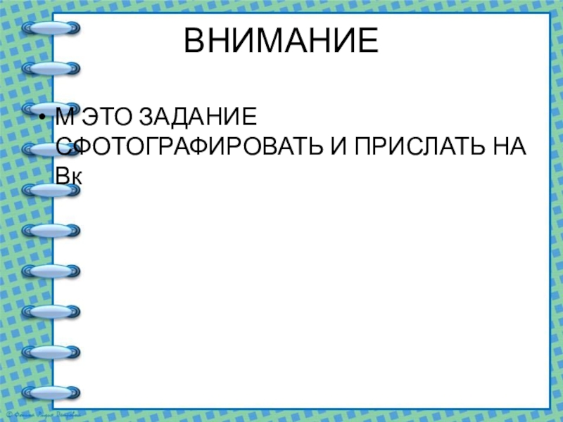 М ЭТО ЗАДАНИЕ СФОТОГРАФИРОВАТЬ И ПРИСЛАТЬ НА Вк