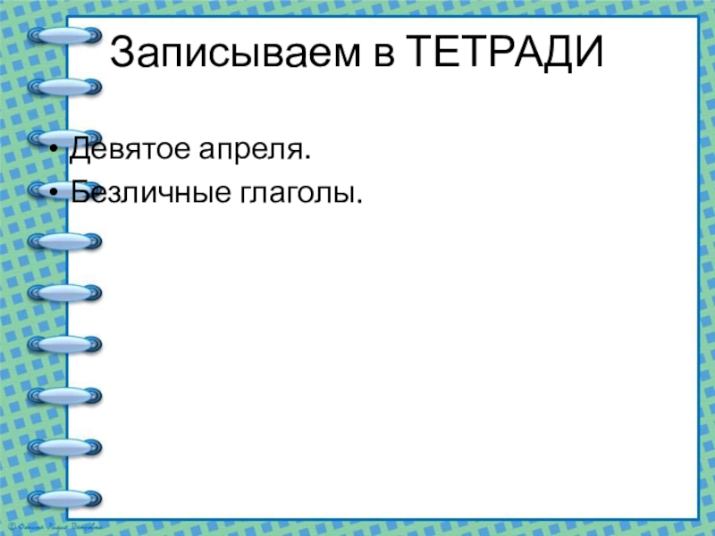 Записываем в ТЕТРАДИДевятое апреля.Безличные глаголы.