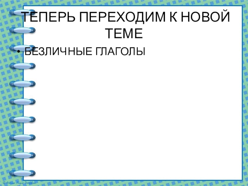 ТЕПЕРЬ ПЕРЕХОДИМ К НОВОЙ ТЕМЕБЕЗЛИЧНЫЕ ГЛАГОЛЫ