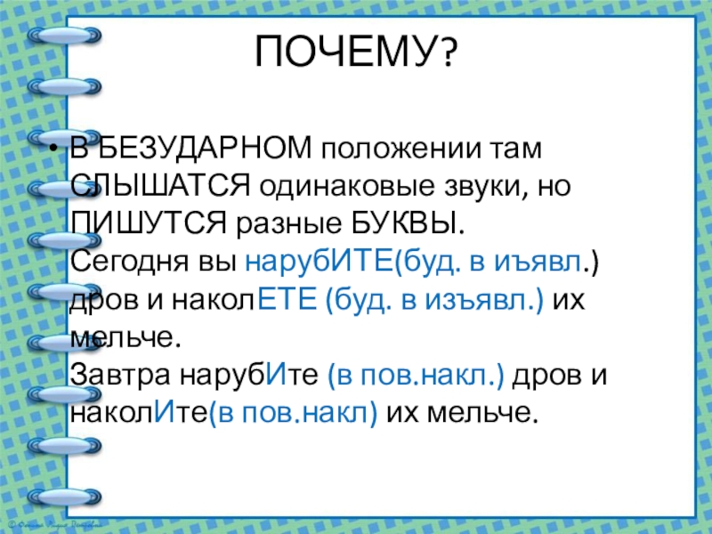 ПОЧЕМУ?В БЕЗУДАРНОМ положении там СЛЫШАТСЯ одинаковые звуки, но ПИШУТСЯ разные БУКВЫ. Сегодня вы нарубИТЕ(буд. в иъявл.) дров