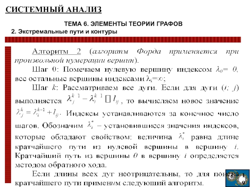 максимальном (длиннейшем) пути – достаточно изменить знаки дуг на противоположные и решить задачу о кратчайшем пути. Для существования решения задачи о максимальном пути необходимо и достаточно отсутствия контуров положительной длины.
