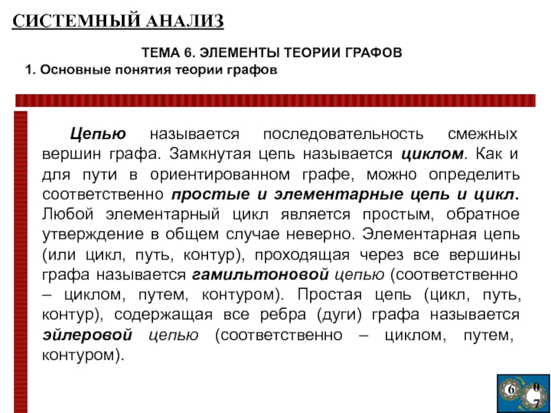 Цепью называется последовательность смежных вершин графа. Замкнутая цепь называется циклом.