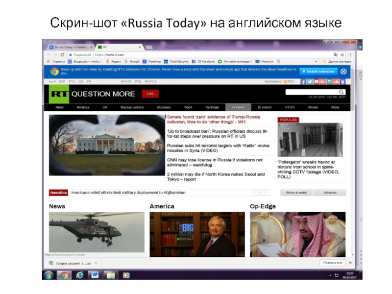 Слайд 21Скрин-шот «Russia Today» на английском языке