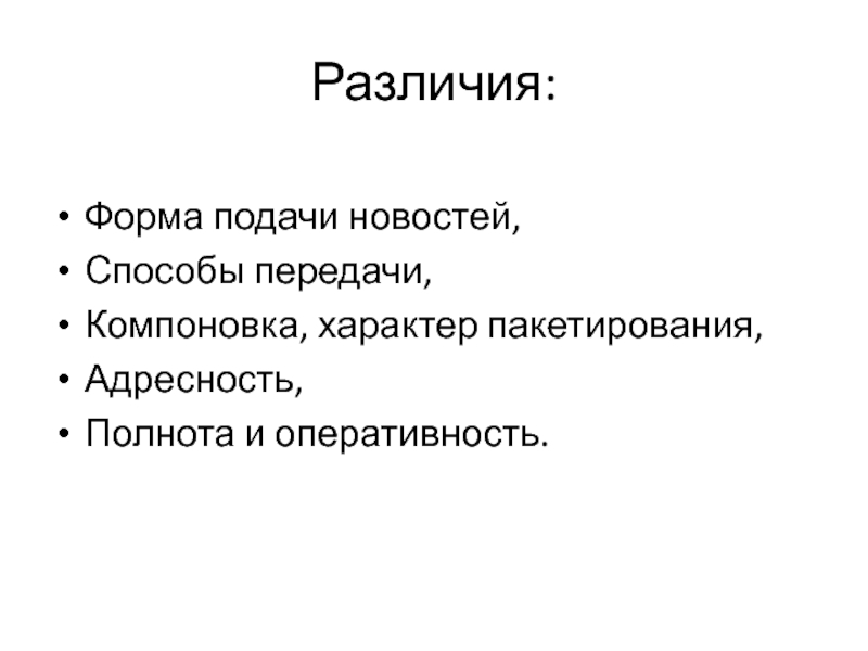передачу новой информации. Новости поступают к потребителям в составе информационного продукта.