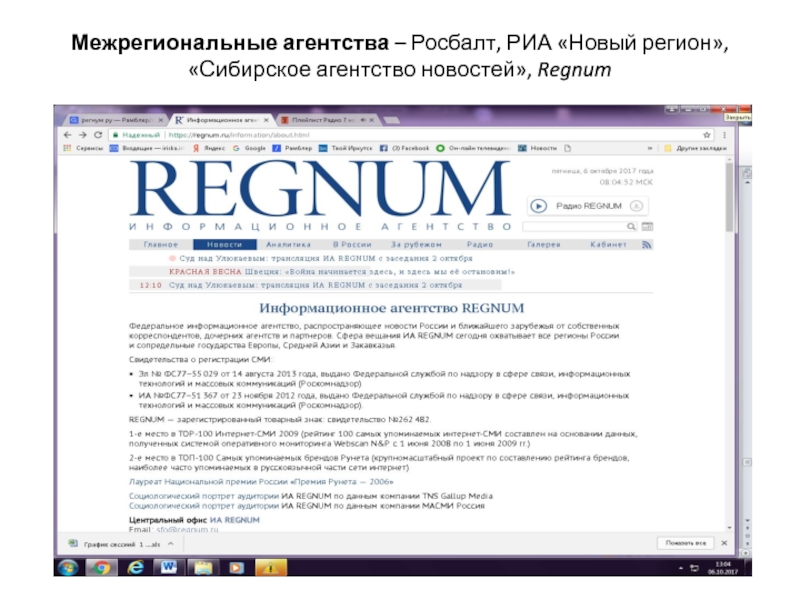 Слайд 33Межрегиональные агентства – Росбалт, РИА «Новый регион», «Сибирское агентство новостей»,