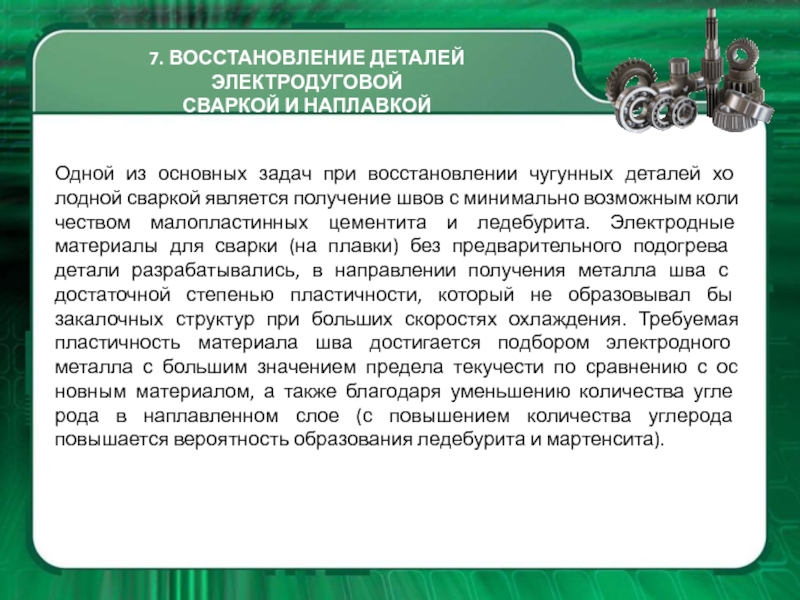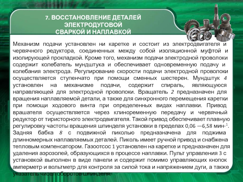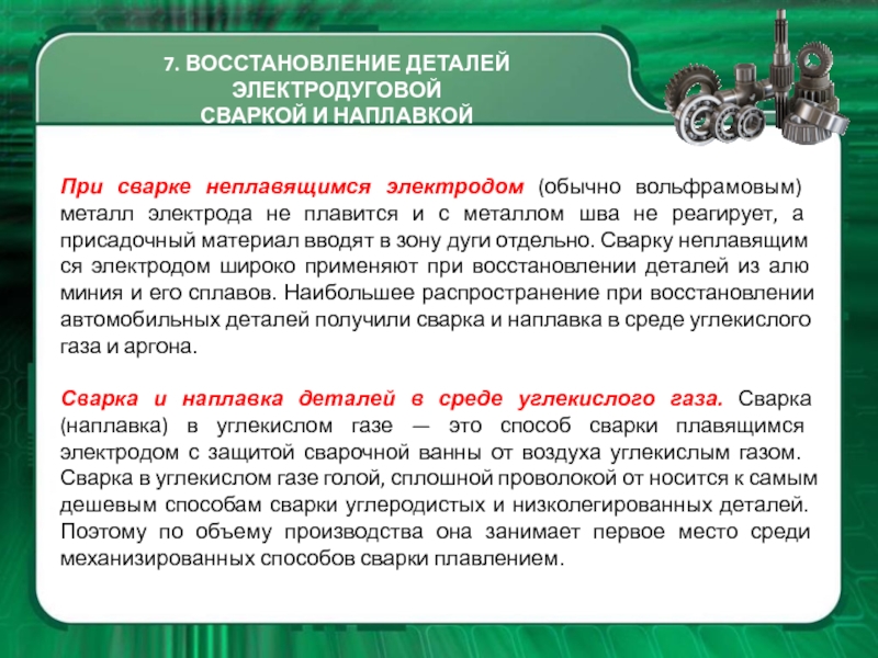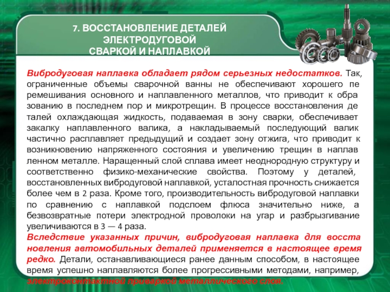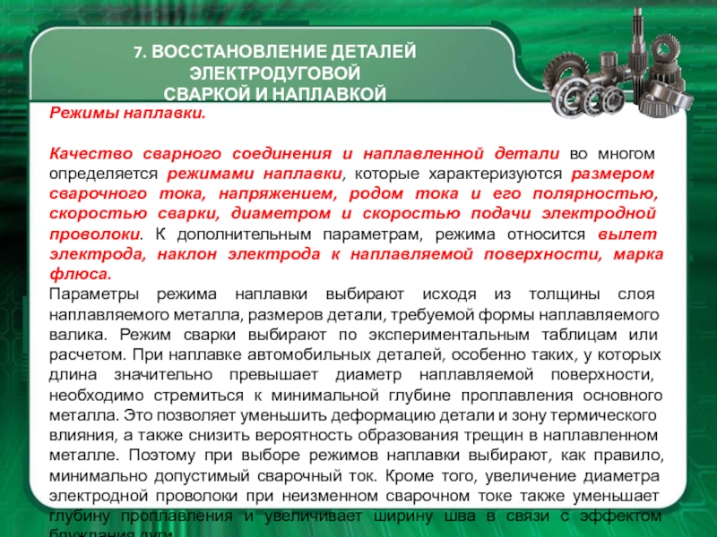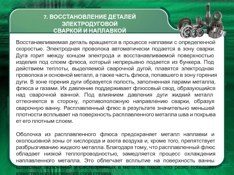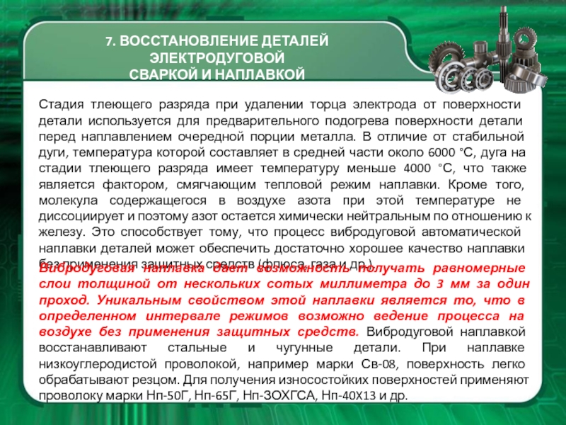Слайд 517. ВОССТАНОВЛЕНИЕ ДЕТАЛЕЙ ЭЛЕКТРОДУГОВОЙ