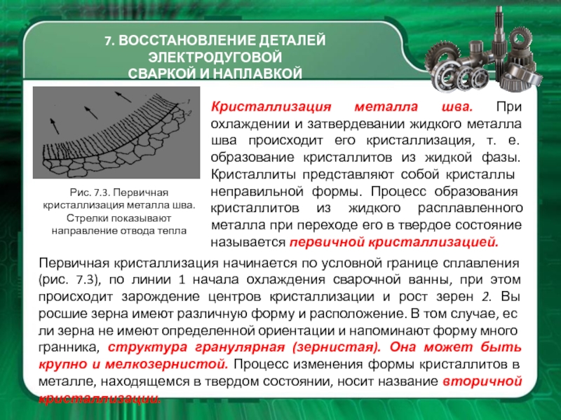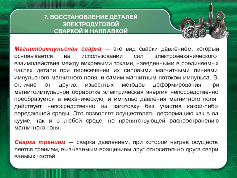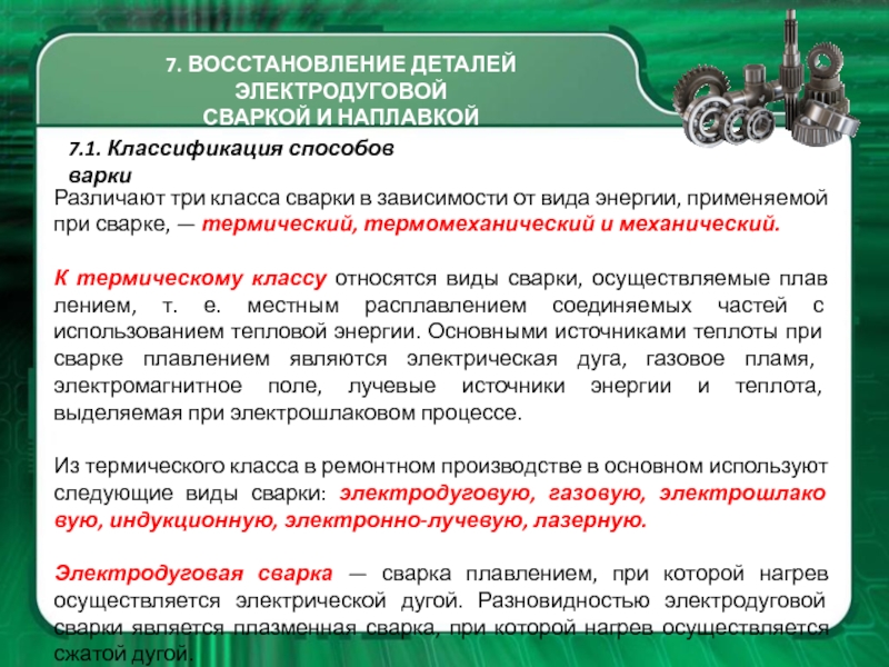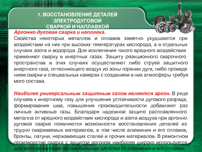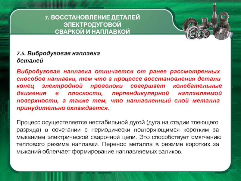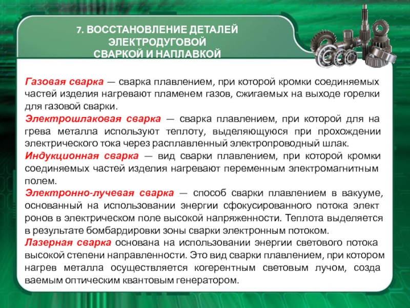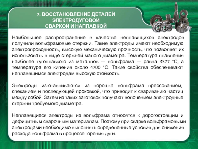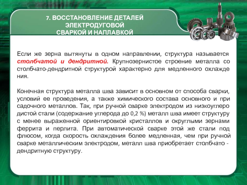 Слайд 517. ВОССТАНОВЛЕНИЕ ДЕТАЛЕЙ ЭЛЕКТРОДУГОВОЙ
