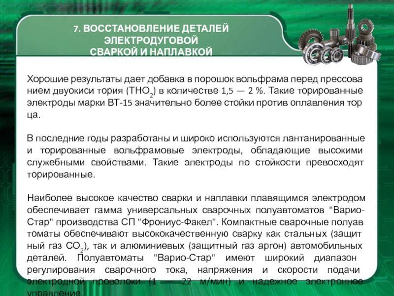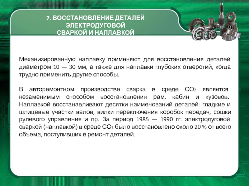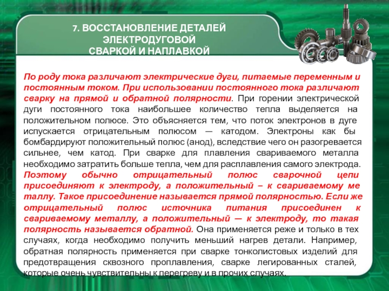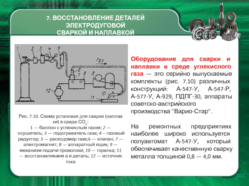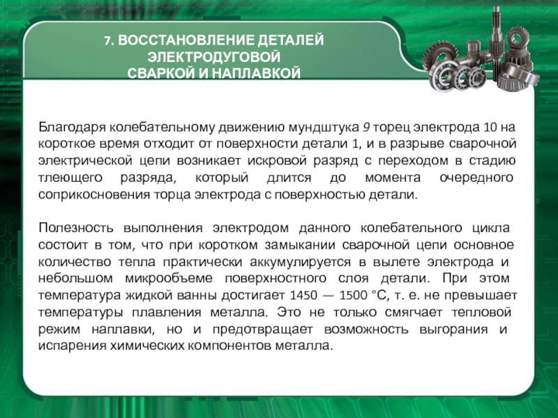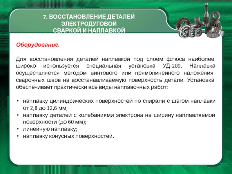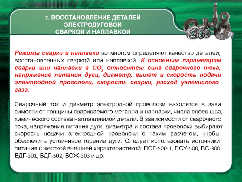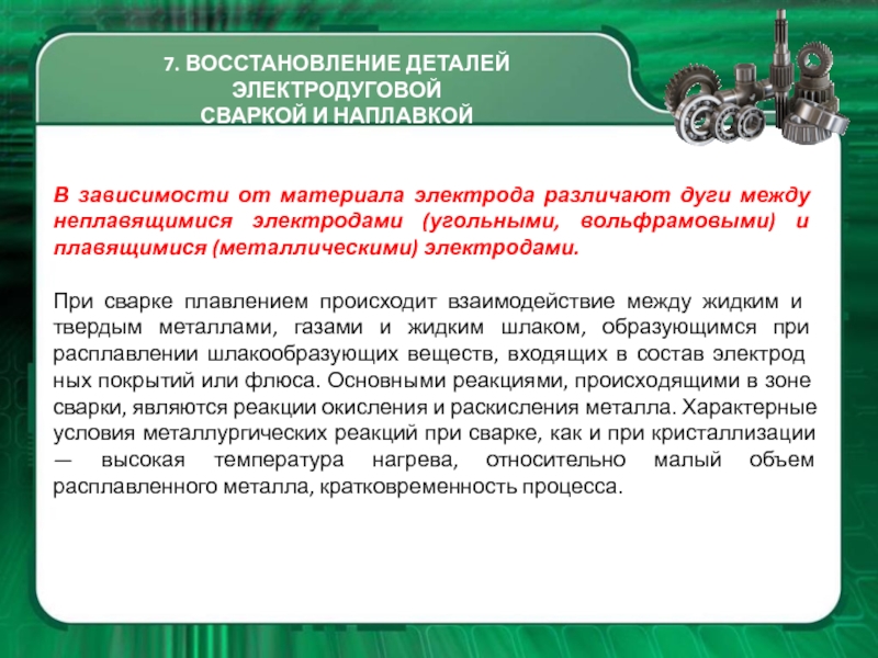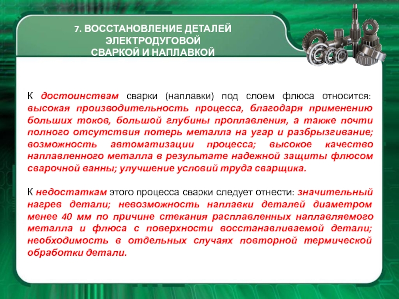 Слайд 507. ВОССТАНОВЛЕНИЕ ДЕТАЛЕЙ ЭЛЕКТРОДУГОВОЙ