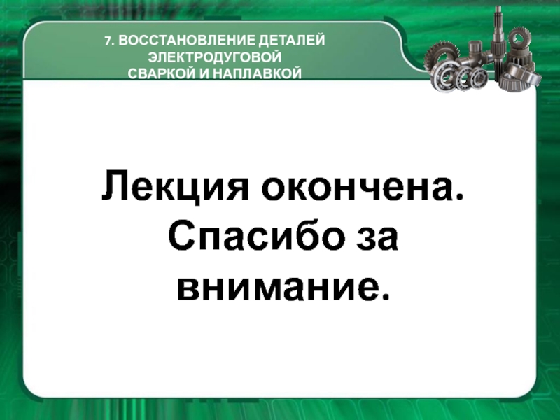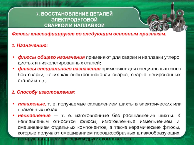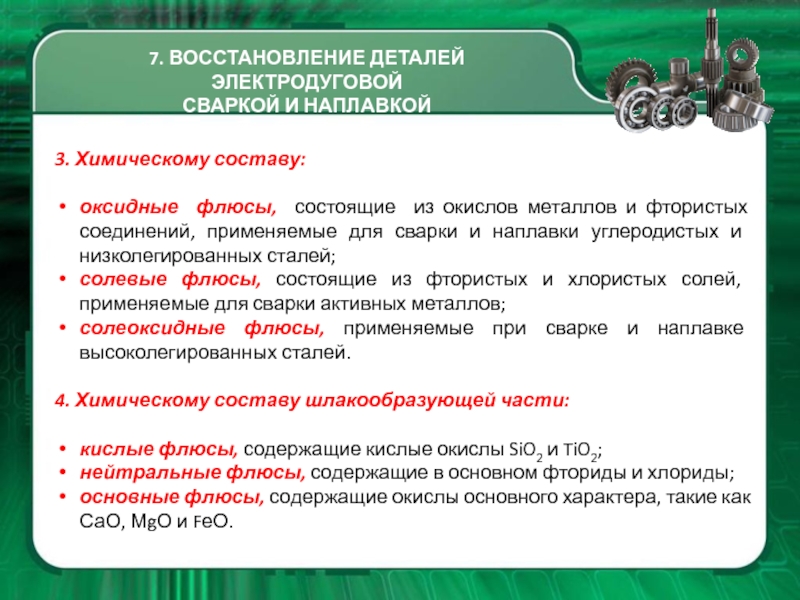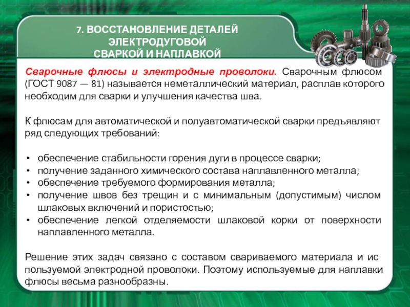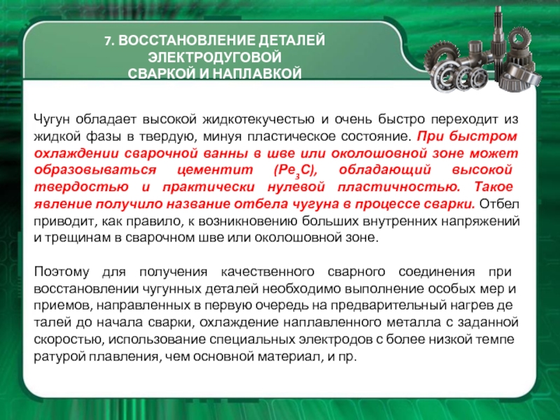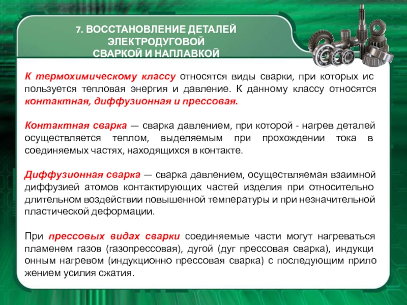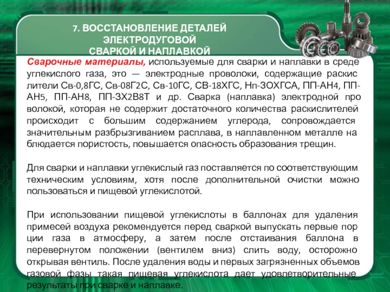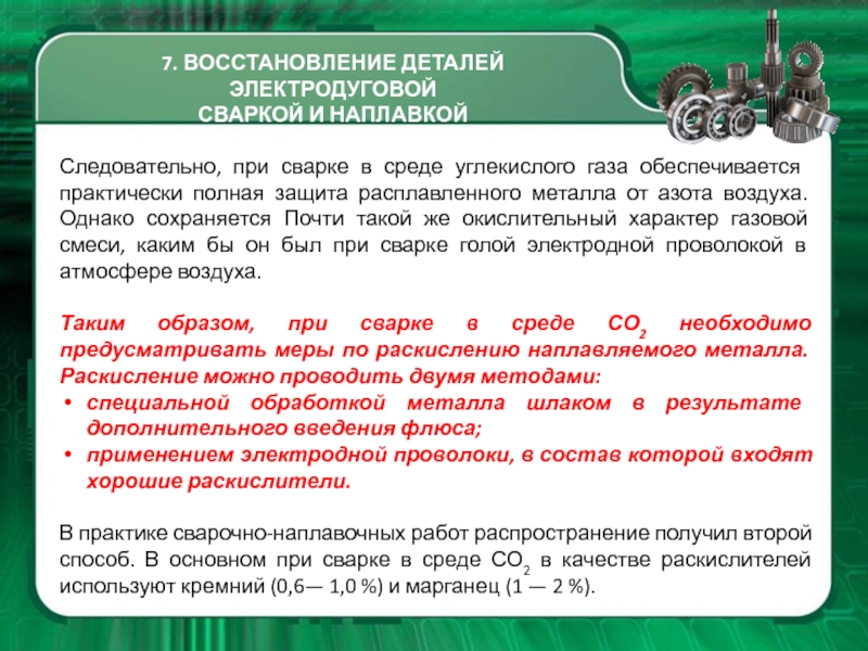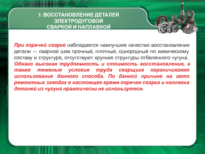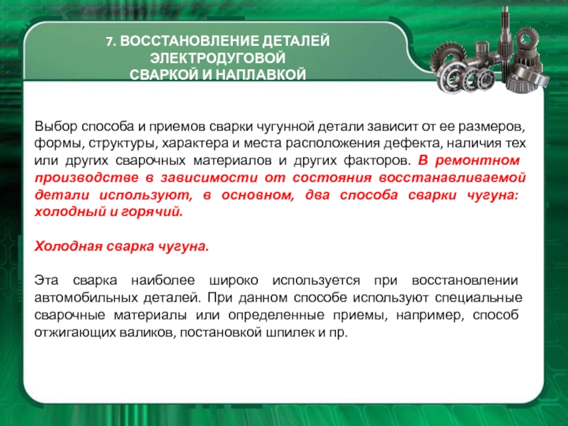 Слайд 507. ВОССТАНОВЛЕНИЕ ДЕТАЛЕЙ ЭЛЕКТРОДУГОВОЙ
