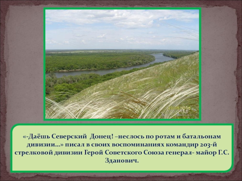 Слайд 2«-Даёшь Северский Донец! –неслось по ротам и батальонам дивизии…» писал