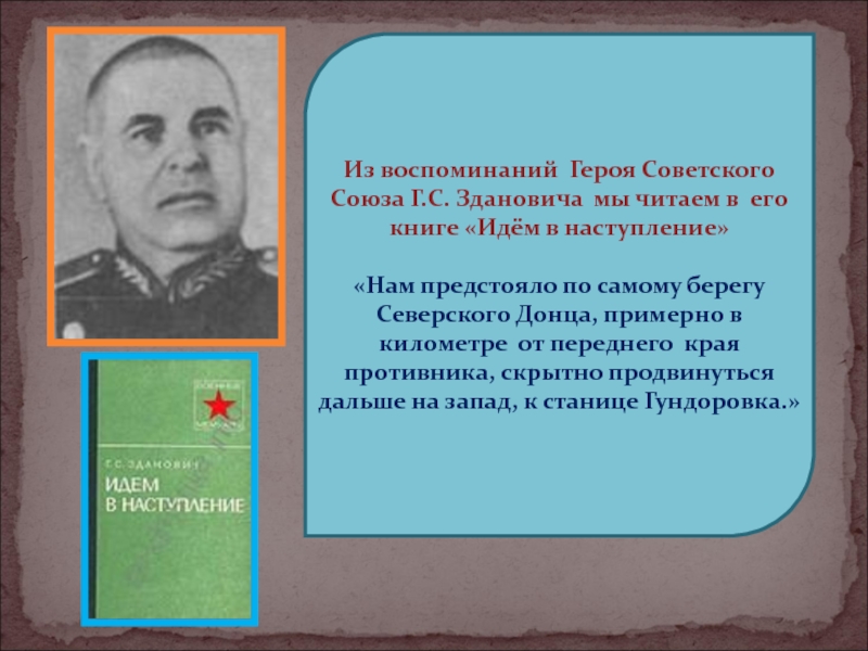 Слайд 4Из воспоминаний Героя Советского Союза Г.С. Здановича мы читаем в