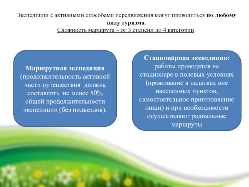 Экспедиции с активными способами передвижения могут проводиться по любому виду туризма.