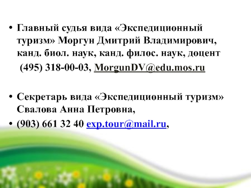 Главный судья вида «Экспедиционный туризм» Моргун Дмитрий Владимирович, канд. биол.