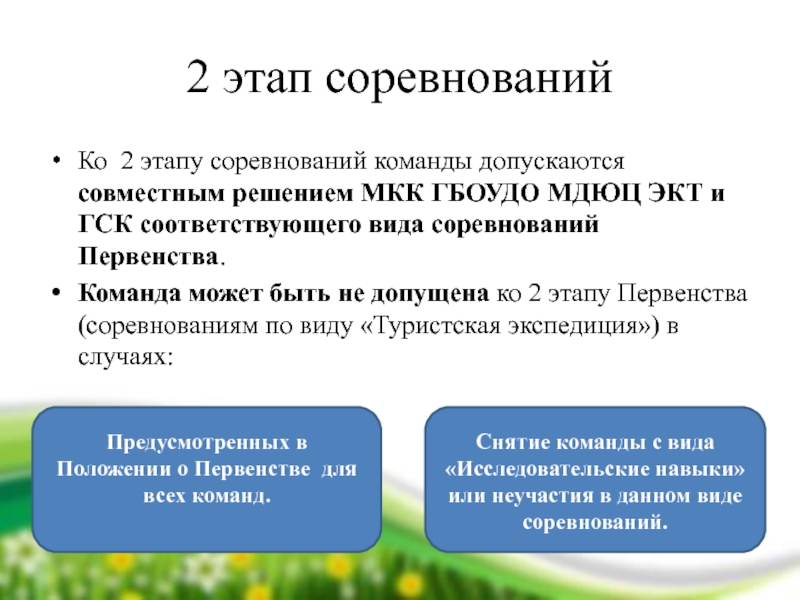 Команда может быть не допущена ко 2 этапу Первенства (соревнованиям по виду «Туристская экспедиция») в случаях: