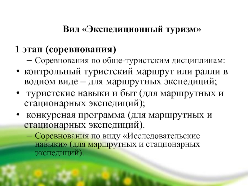 ВИД «ЭКСПЕДИЦИОННЫЙ ТУРИЗМ»